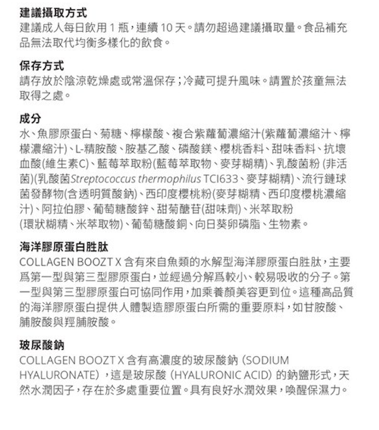 商品詳情 混合莓果風味補充品-10天養護方案 產品概述: 主要優勢: 成分說明 更多資訊: 使用說明: 混合莓果風味補充品-10天養護方案 COLLAGEN BOOZT X TWD $2,769 TWD $2,769