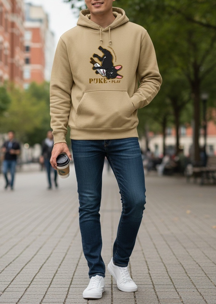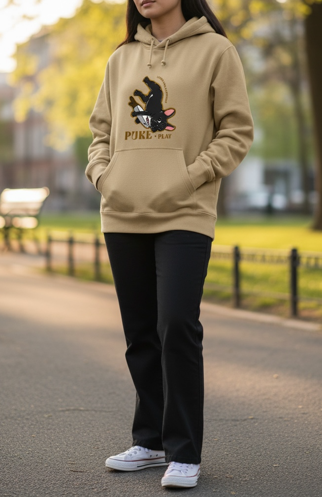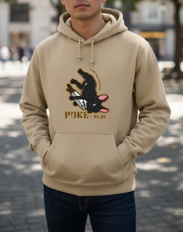 修身版型連帽T恤,前片印製大片透氣Puke(撲客) 生活可愛圖騰印刷,內刷毛保暖性十足,可搭配多層次內搭直接外穿或外搭配寬鬆外套非常街頭感。
