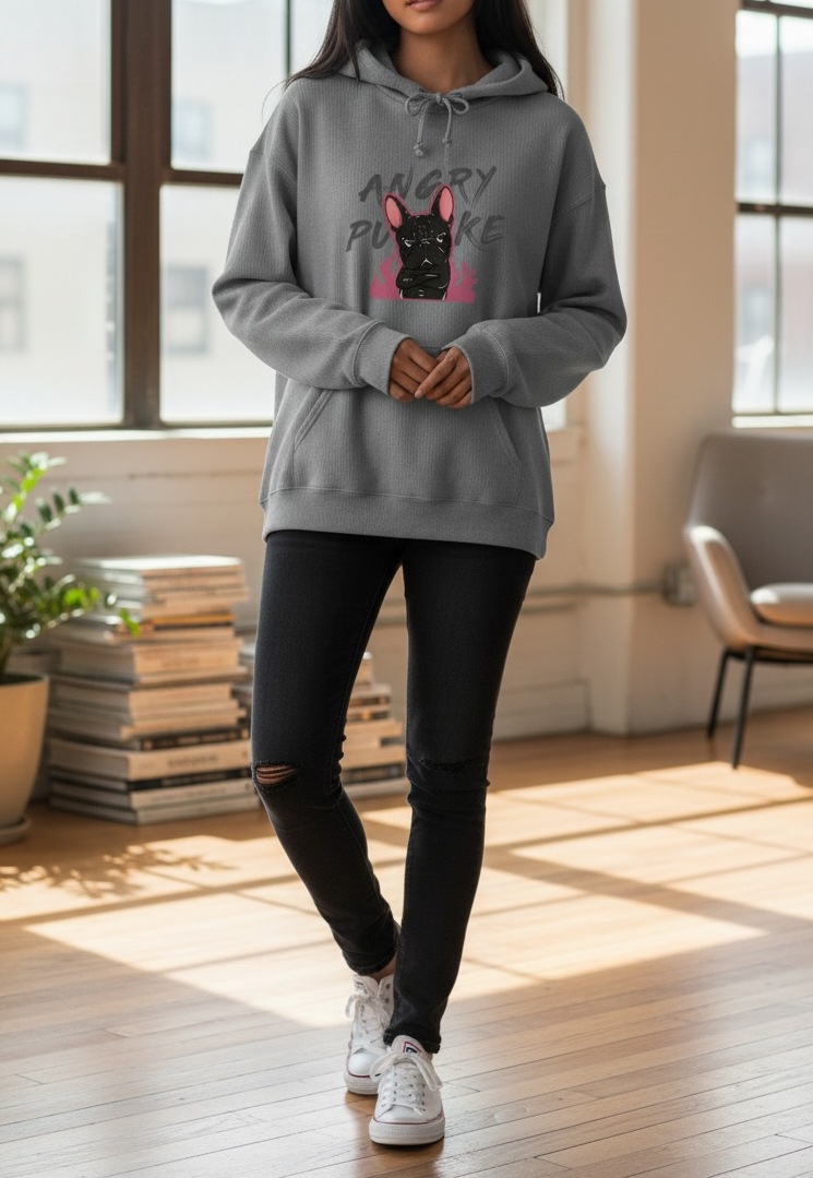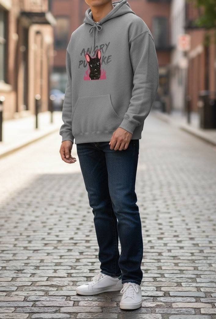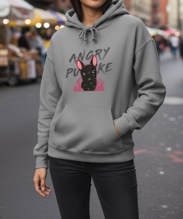 修身版型連帽T恤,前片印製大片透氣Puke(撲客) 生活可愛圖騰印刷,內刷毛保暖性十足,可搭配多層次內搭直接外穿或外搭配寬鬆外套非常街頭感。